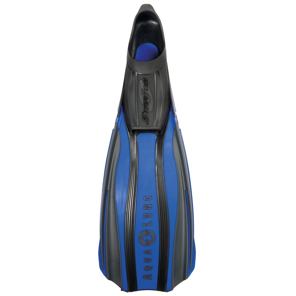 Aqualung Stratos 3 so plavuti z zaprto peto, v modri barvi, idealne za toplejše vode in intenzivno rabo v potapljaških centrih.